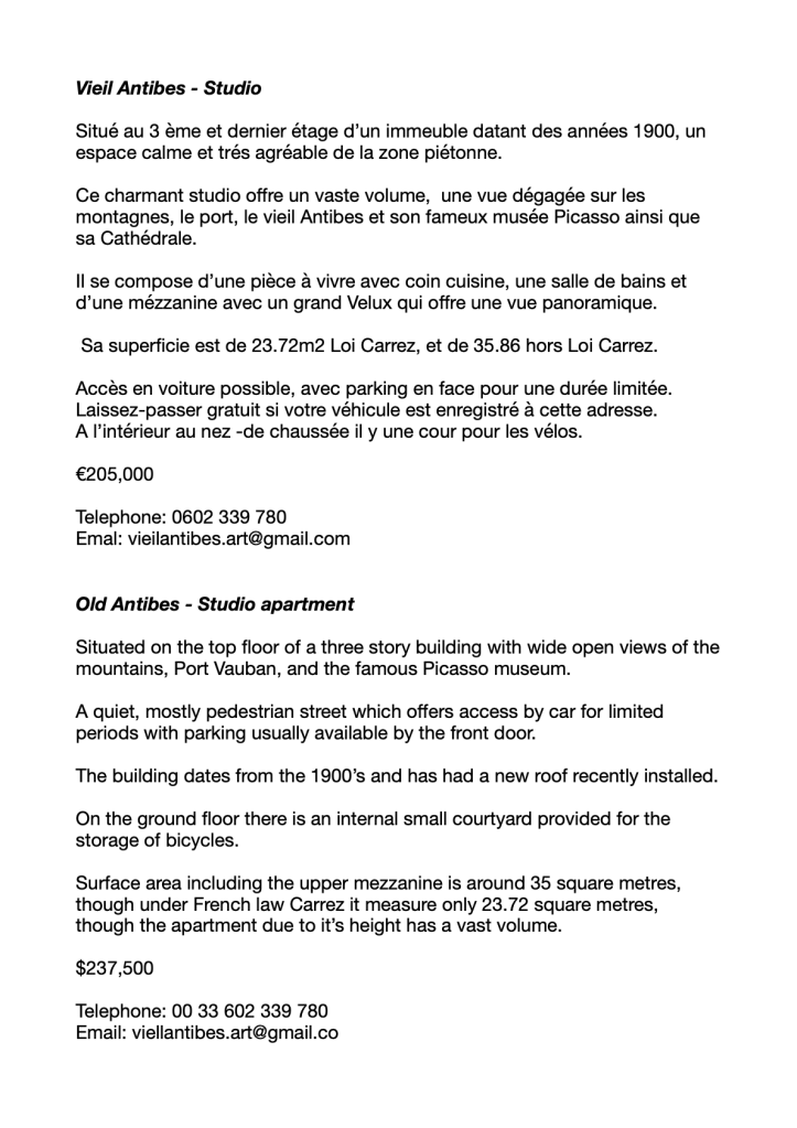 Vieil Antibes Apartment For Sale Direct from the Owners €205,000